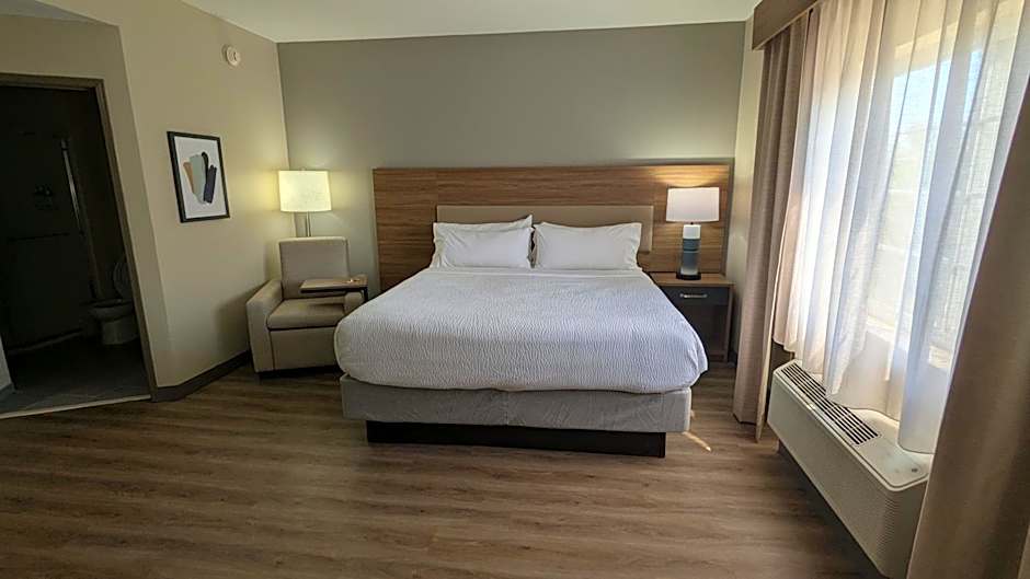 The suite provides a tea and coffee maker, a dining area, as well as a private bathroom featuring a walk-in shower and a hairdryer. Guests can make meals in the kitchen that is equipped with a stovetop, a refrigerator, a dishwasher and kitchenware. This wheelchair accessible suite features air conditioning, a seating area with a flat-screen TV and a toilet with grab rails. The unit offers 1 bed.